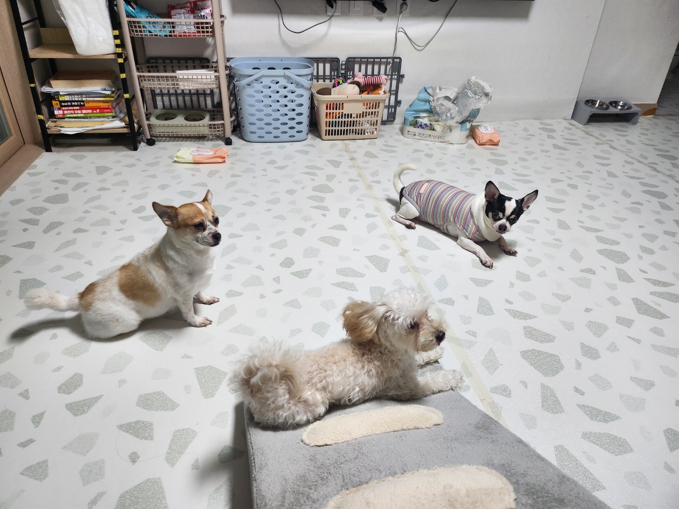 저희 집은 반려견과 아이가 함께 생활하는 집입니다. 매트를 고를 때 층간소음뿐만 아니라 강아지의 배변이 스며들지 않고 청소가 용이한 제품을 선택했습니다.