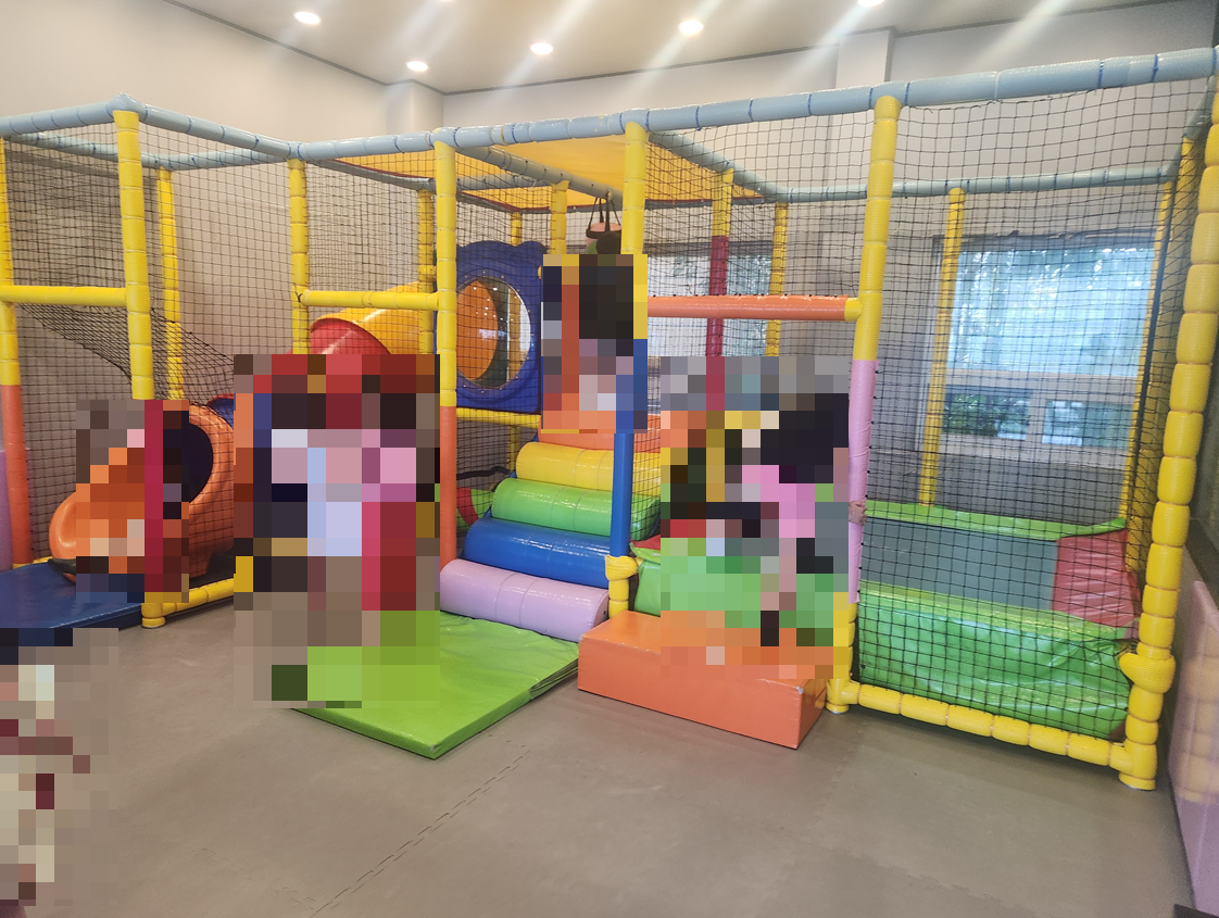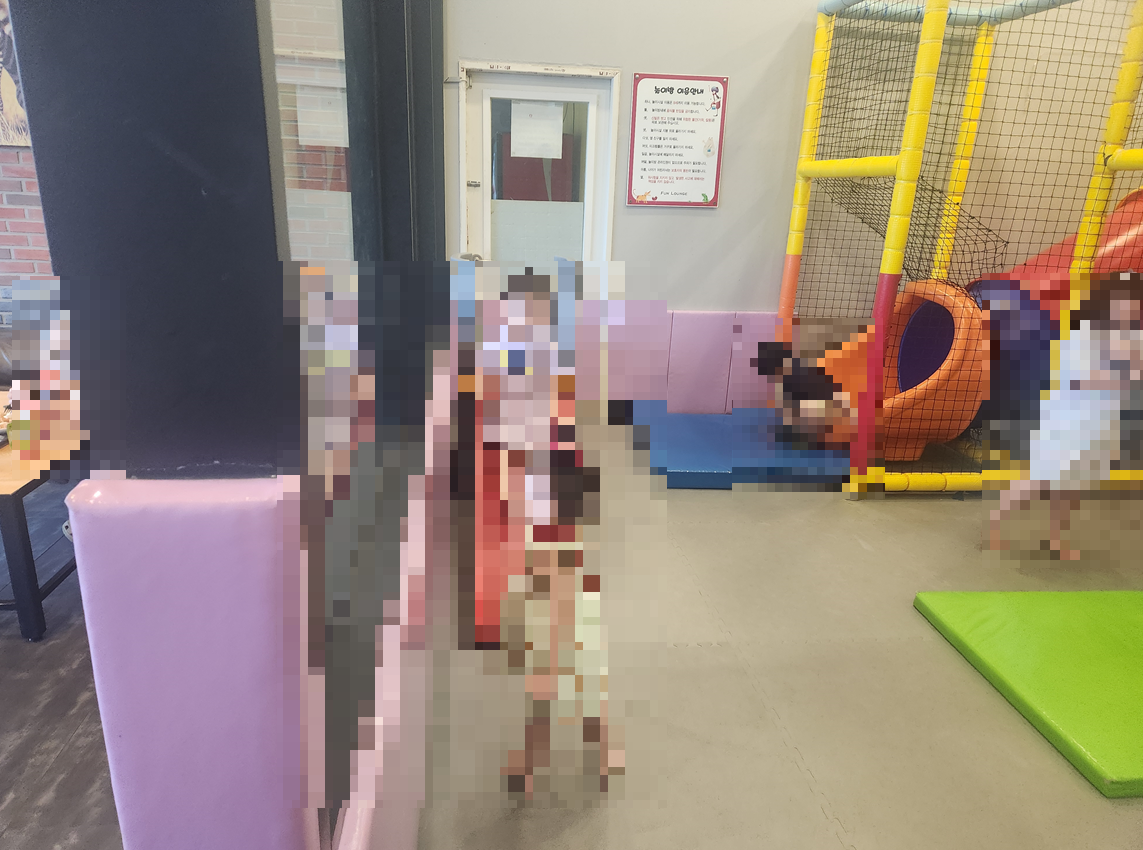 놀이방은 생각보다 넓었어요. 이미 도착했을 때 많은 아이들이 여기서 놀고 있었고 부모님은 아이들이 노는 것을 유리문으로 지켜보면서 차를 드시고 계셨어요.