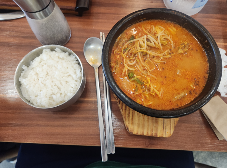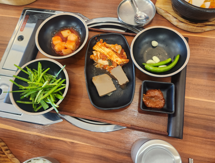 저는 얼큰 사골수제순댓국을 주문했는데요. 밑반찬이 먼저 나오고 조금 기다리니 제가 주문한 메뉴가 나왔습니다.