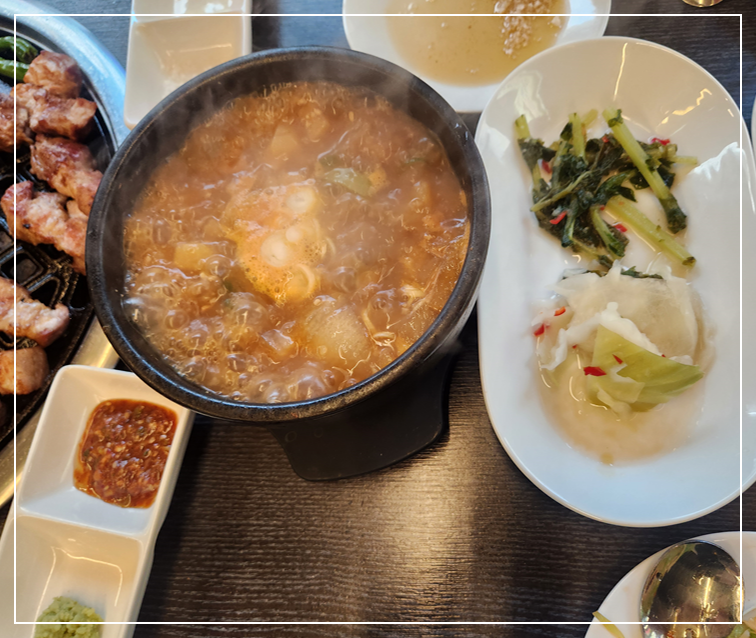 야외 테이블 앉아서 구수한 된장찌개 그리고 숙성삼겹살에 소주 한잔 하면 제대로 스트레스가 풀릴 거 같습니다.