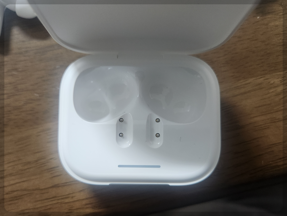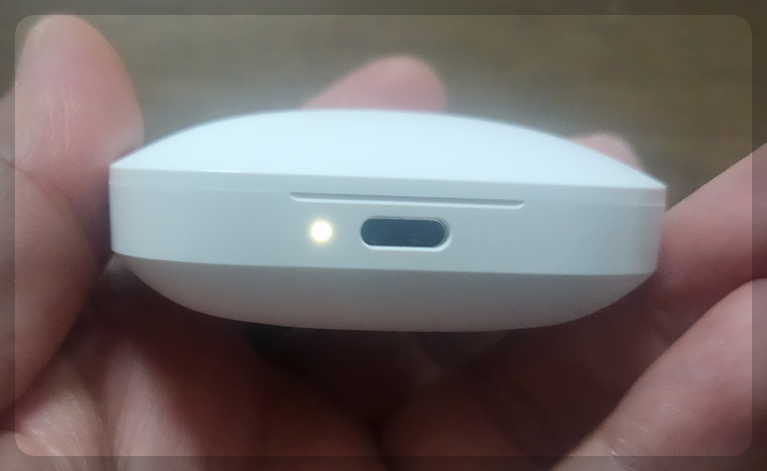 열었을 때 충전 케이스에 하얀색 LED 램프가 들어오네요.