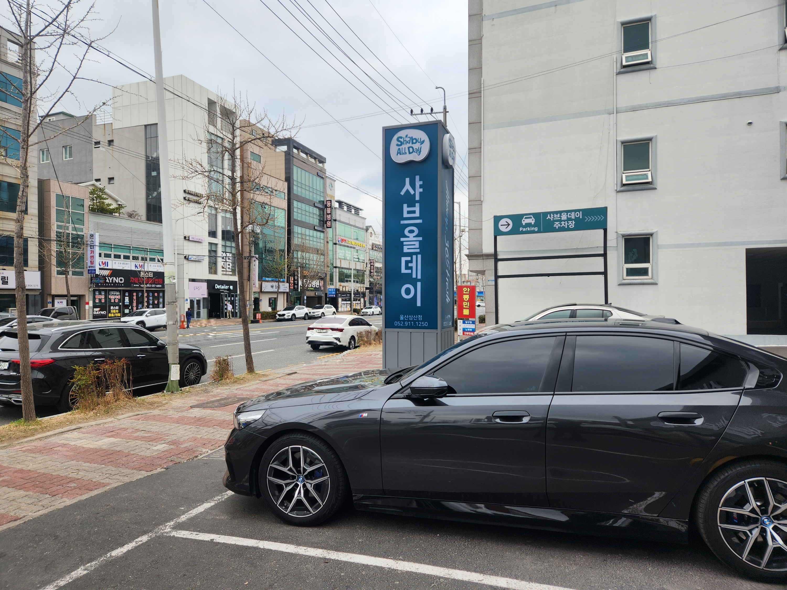 아래의 사진은 샤브올데이 울산삼산점 주차장입니다. 음식점 앞에 넓은 주차장이 있어서 편했어요.
