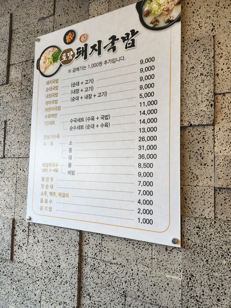 돼지국밥, 순대국밥, 수육국밥, 메밀막국수, 어린이국밥까지~