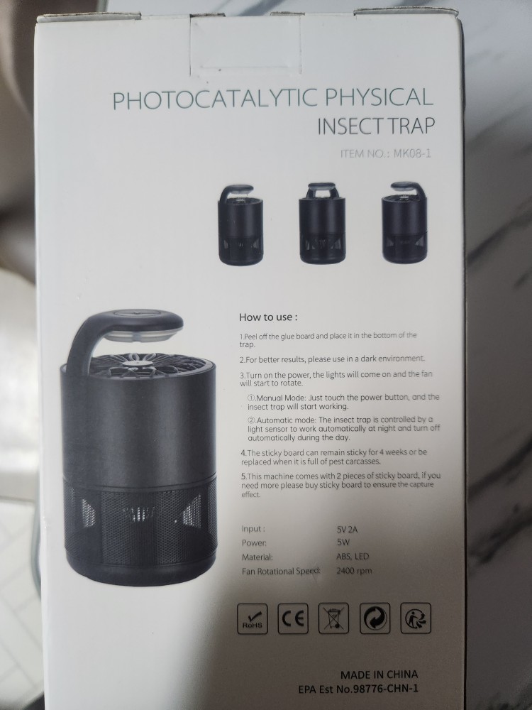 조용히 UV 불빛으로 유인 → 팬으로 빨아들이고 →
